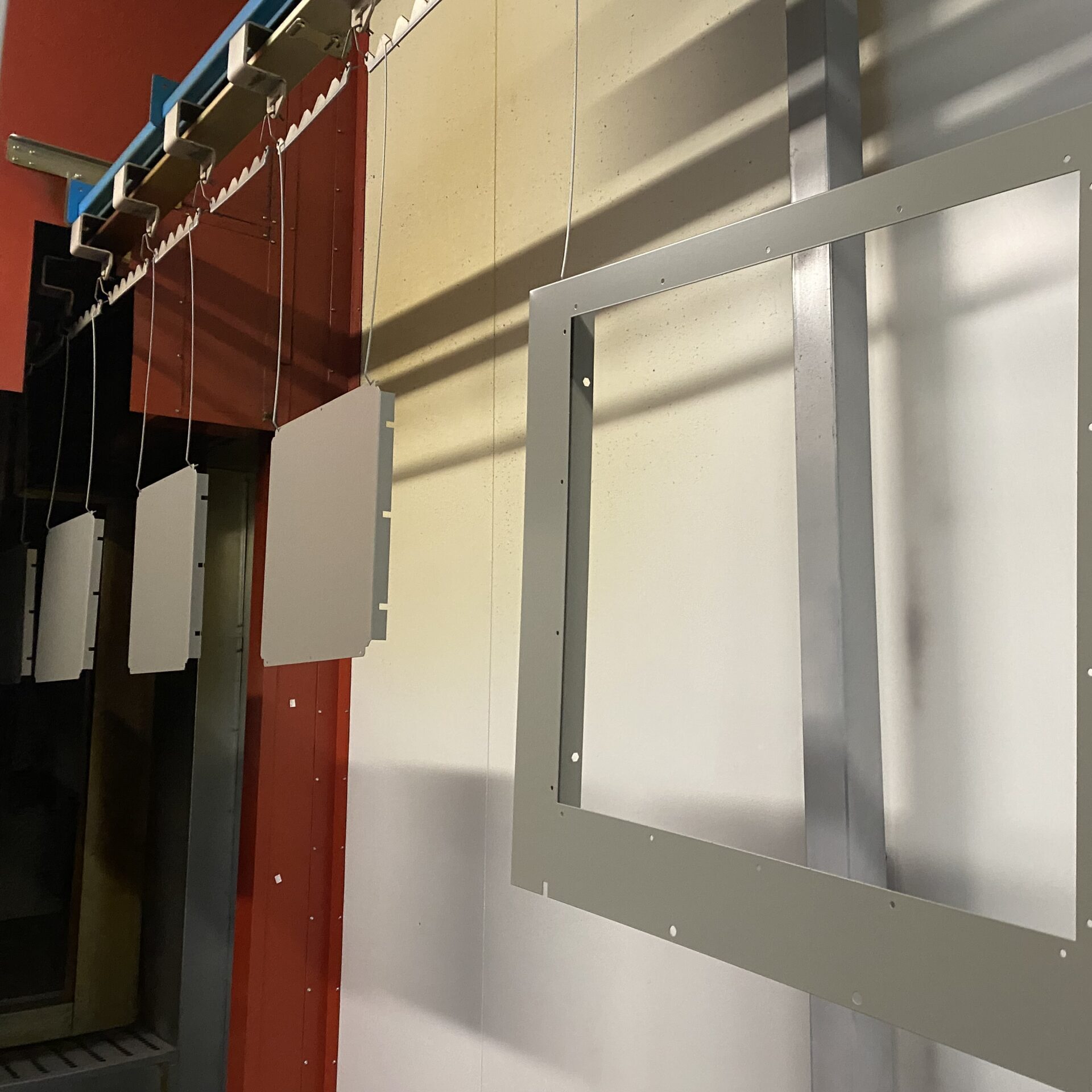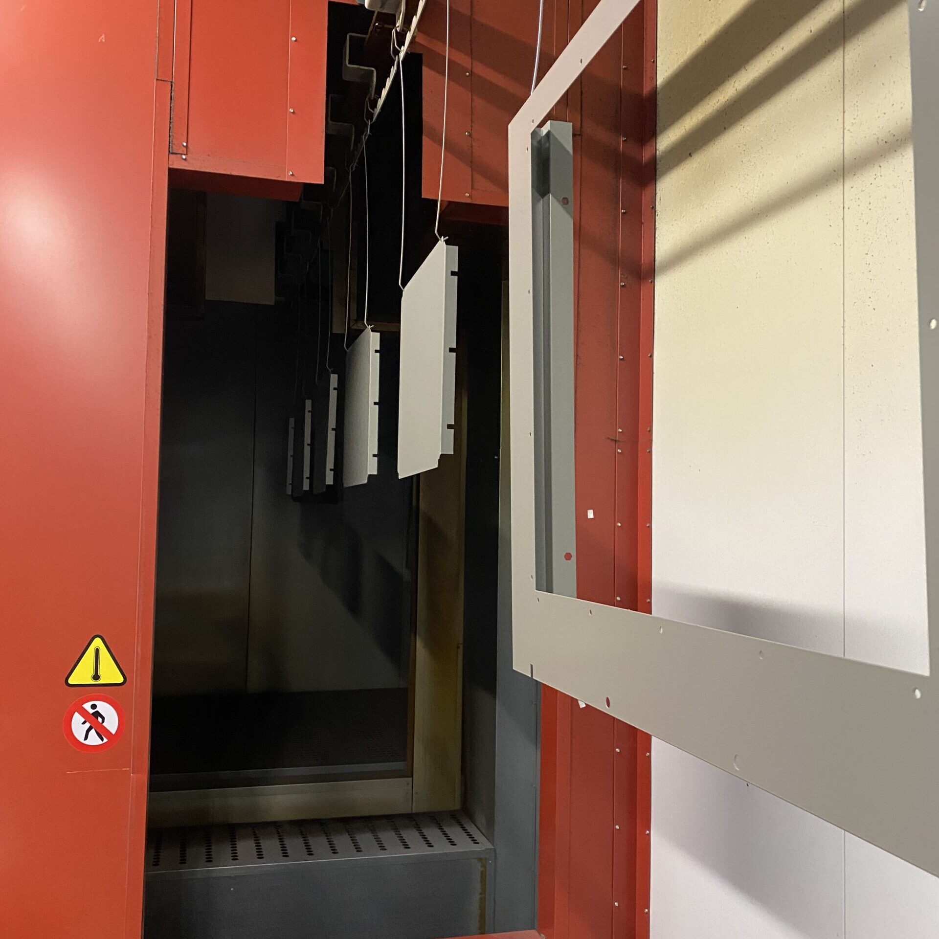 Totalement intégré à notre chaine de production, notre ligne de peinture par poudrage nous permet de peindre tous types de pièces en grandes dimensions.